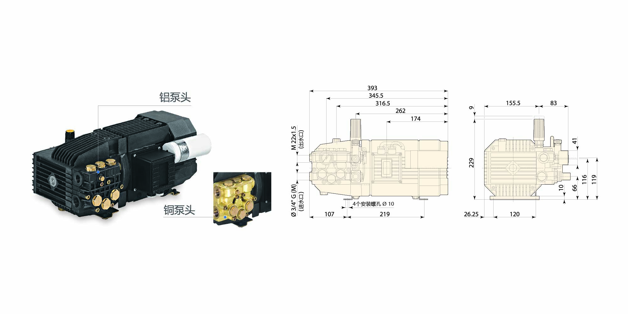 | HPE 10.12 - 銅泵頭 | 10.0 | 2.64 | 120 | 1740 | 3.0 | 2.2 | 21.5 | 1450 |